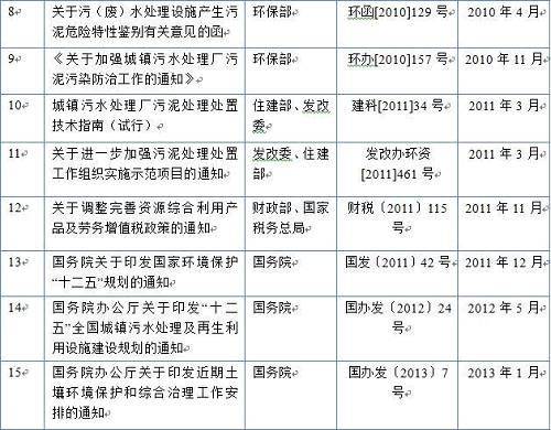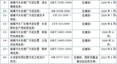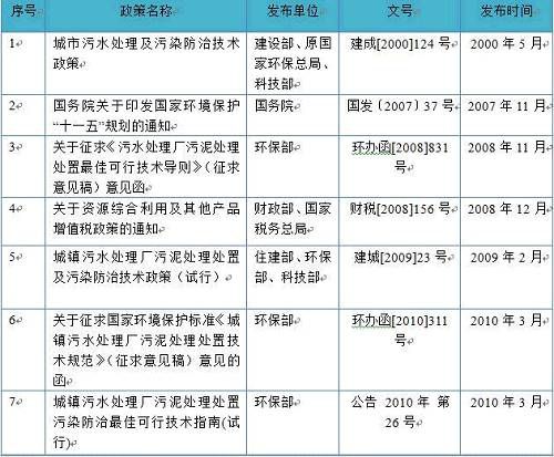我國從國家法律法規(guī)宏觀政策層面出臺的污泥處理處置相關(guān)政策和標(biāo)準(zhǔn)詳見下表1和表2。