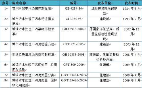 從國家層面的標(biāo)準(zhǔn)來看,現(xiàn)共發(fā)布過污泥相關(guān)標(biāo)準(zhǔn)16項,其中包括污泥泥質(zhì)相關(guān)標(biāo)準(zhǔn)有8項,排放標(biāo)準(zhǔn)4項,分類標(biāo)準(zhǔn)1項,檢驗方法1項,技術(shù)規(guī)程1項,還有1項設(shè)計規(guī)范。整體來看,大部分污泥相關(guān)標(biāo)準(zhǔn)均為推薦性標(biāo)準(zhǔn)和行業(yè)標(biāo)準(zhǔn),國家強(qiáng)制標(biāo)準(zhǔn)有5項,其中《農(nóng)用污泥中污染物控制標(biāo)準(zhǔn)》(GB4284-84)和《城鎮(zhèn)污水處理廠污染物排放標(biāo)準(zhǔn)》(GB 18918-2002)發(fā)布時間要追溯到1984年和2002年,在《生活垃圾填埋場污染控制標(biāo)準(zhǔn)》(GB16889-2008)中關(guān)于污泥的規(guī)定只有一條,而水泥窯協(xié)同處置污泥的設(shè)計標(biāo)準(zhǔn),對整個行業(yè)參考性較小。目前最新執(zhí)行的強(qiáng)制性標(biāo)準(zhǔn)為《城鎮(zhèn)污水處理廠污泥泥質(zhì)》(GB24188-2009),標(biāo)準(zhǔn)內(nèi)容也僅僅只有對4.2.1條款的城鎮(zhèn)污水處理廠污泥泥質(zhì)基本控制指標(biāo)及限值作出強(qiáng)制性要求,其他條款如監(jiān)測分析方法等均為推薦性。