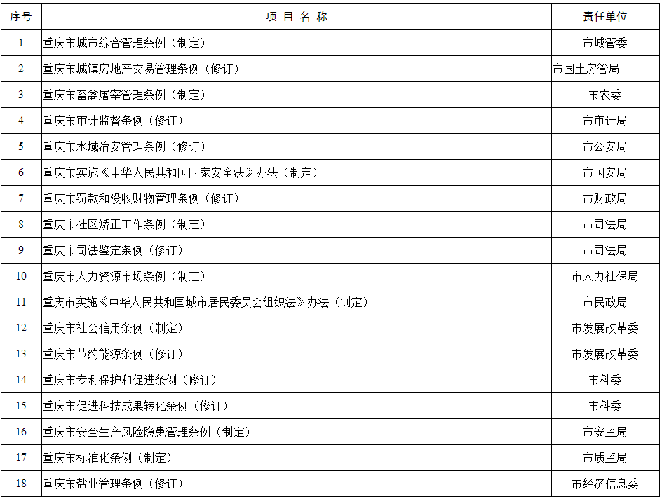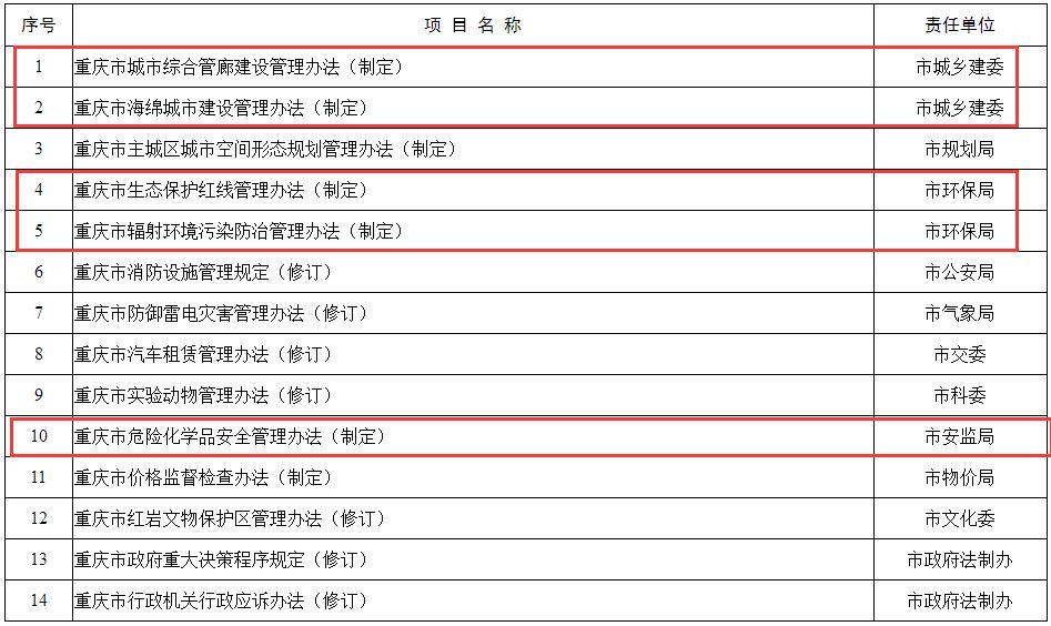 重慶市2018年立法工作計(jì)劃公布,涉及水污染防治、生活垃圾分類、海綿城市建設(shè)等眾多環(huán)保類立法項(xiàng),詳情如下:
