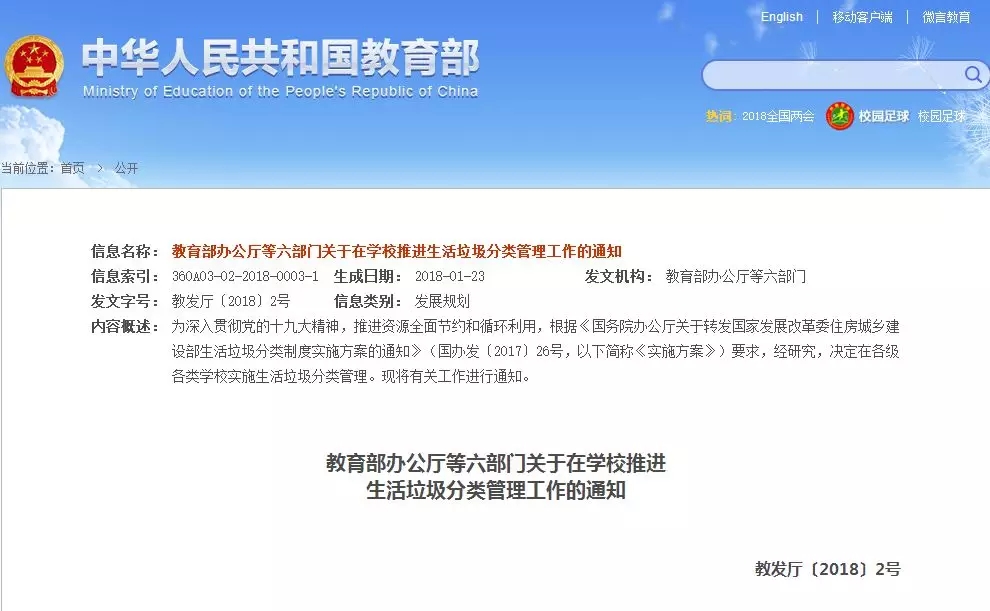 教育部發(fā)文,垃圾分類入教材,2020年底垃圾分類知識(shí)普及率達(dá)到100%,鼓勵(lì)社會(huì)資本參與校內(nèi)生活垃圾分類【附通知全文】