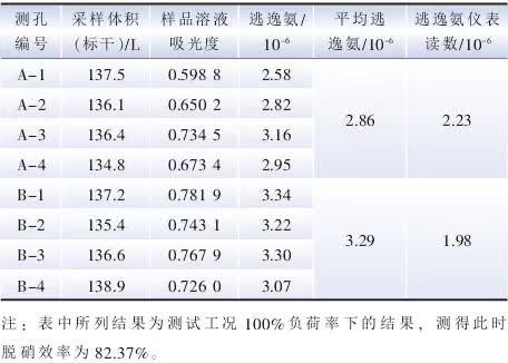 為便于測(cè)試結(jié)果與電廠儀表數(shù)據(jù)的比對(duì),試驗(yàn)所測(cè)逃逸氨濃度按10-6計(jì)量給出,其轉(zhuǎn)化系數(shù)為22.4/17。