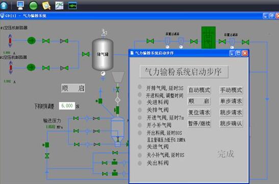 自動(dòng)打開(kāi)排氣閥和氣動(dòng)進(jìn)料閥,進(jìn)氣閥和出料閥關(guān)閉狀態(tài),此時(shí)發(fā)送罐內(nèi)無(wú)壓力,石灰石粉靠重力自由落入發(fā)送罐內(nèi),設(shè)置一定的進(jìn)料時(shí)間,在發(fā)送罐料位高報(bào)警前,關(guān)閉進(jìn)料閥和排氣閥。