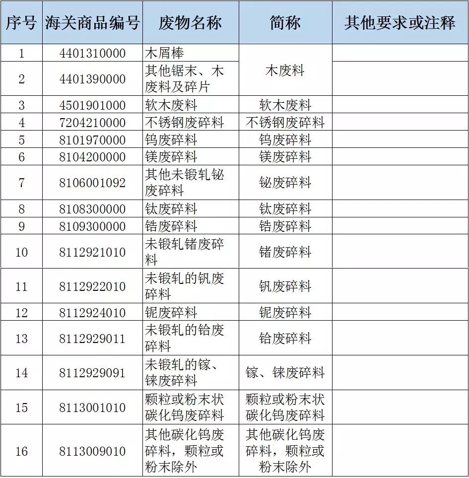 關(guān)于調(diào)整《進口廢物管理目錄》的公告