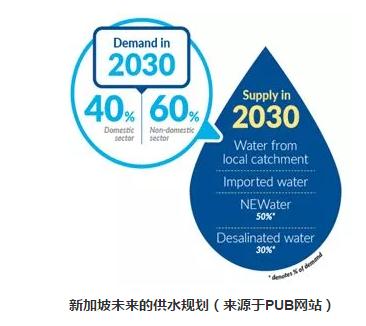 也在同一年,受到NEWater示范項(xiàng)目成功的鼓舞,PUB提出重新制定新加坡的供水水質(zhì)規(guī)劃——“四個(gè)國(guó)家水龍頭”計(jì)劃,計(jì)劃到2060年,即與馬拉西亞供水協(xié)議到期前一年,新加坡將完全實(shí)現(xiàn)水資源的自給自足,在新加坡的總?cè)丝谝堰_(dá)到目前的3倍的前提下,海水淡化和NEWater能夠滿足水資源需求量的80%,其中NEWater占55%。
