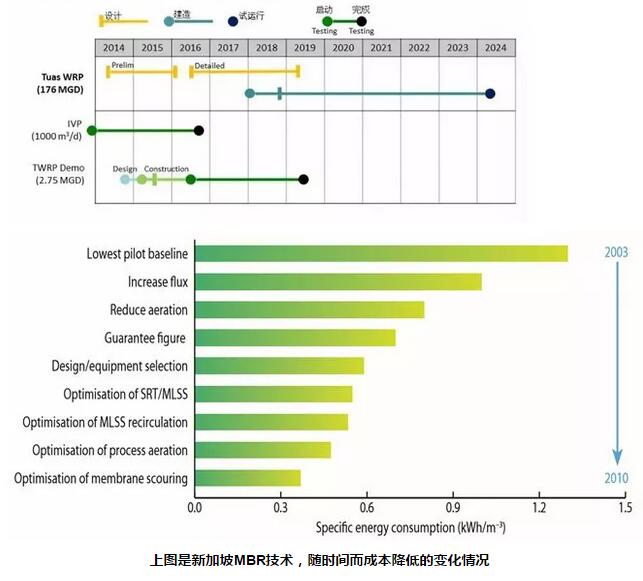 目前,新加坡正在就兩個(gè)再生水廠工藝方案進(jìn)行實(shí)驗(yàn)室測(cè)試。其中,主流ANAMMOX工藝以及厭氧膜生物反應(yīng)器(AnMBR),將在大約10年內(nèi)得到實(shí)驗(yàn)與中試驗(yàn)證。而主流ANAMMOX工藝是世界上目前所知最為節(jié)能的工藝。