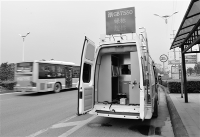 金華市機(jī)動(dòng)車尾氣遙感監(jiān)測車正在相關(guān)路段開展檢測執(zhí)法。