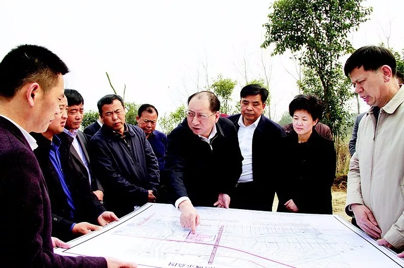 仙桃市委書記胡玖明(右四)、市長周文霞(右二)在調(diào)研循環(huán)經(jīng)濟(jì)產(chǎn)業(yè)園建設(shè)準(zhǔn)備工作?! ?/p>