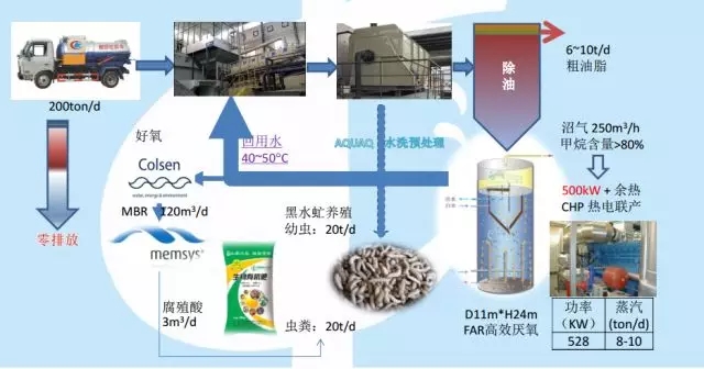 合肥市餐廚垃圾資源化利用和無害化處理工程(一期)項(xiàng)目則采用的是“水洗分選預(yù)處理+高效厭氧+生物好氧堆肥”路徑。項(xiàng)目日處理量為200噸/日,有機(jī)肥產(chǎn)量近60噸/日。利用黑水虻輔助堆肥處理,極大地降低了堆肥處理時(shí)間,加強(qiáng)了堆肥處理效率,而經(jīng)過水洗+高效厭氧處理的純凈物料又使得黑水虻的養(yǎng)殖效果更佳,而黑水虻本身亦可用于蛋白質(zhì)生產(chǎn)。采用黑水虻養(yǎng)殖工藝極大地增長了餐廚垃圾資源化收益。