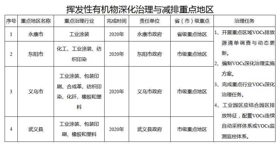 重點(diǎn)推進(jìn)化工、工業(yè)涂裝、包裝印刷、橡膠和塑料制品、化纖、紡織印染、合成革、制鞋等行業(yè)VOCs污染防治。永康、東陽(yáng)、義烏、武義等4個(gè)省、市重點(diǎn)地區(qū)要編制地區(qū)VOCs深化治理方案。重點(diǎn)企業(yè)要建立完善“一廠一策一檔”制度。