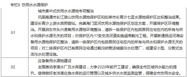 深入推進飲用水水源地環(huán)境保護執(zhí)法專項行動,加大集中式飲用水水源地保護區(qū)內違章建設項目的清拆力度,依法查處保護區(qū)內的違法行為。鞏固狼山飲用水水源地環(huán)境問題整治成果,逐步搬遷飲用水源地二級保護區(qū)內集裝箱及散貨專業(yè)碼頭。排查和依法取締飲用水水源保護區(qū)內的排污口以及影響水源地保護的碼頭,實施水源地及周邊區(qū)域環(huán)境綜合整治。定期調查評估集中式地下水型飲用水水源補給區(qū)環(huán)境狀況。依法劃定飲用水水源地保護區(qū),定期開展縣級以上集中式飲用水水源地環(huán)境狀況調查評估,按照“水量保證、水質達標、應急保障”的要求,加強飲用水水源地及應急備用水源達標建設。對未達到Ⅲ類水質要求的飲用水水源要制定并實施水質達標方案。加強飲用水水源風險防控體系建設,進一步優(yōu)化沿江取水口和排污口布局。強化對水源周邊可能影響水源安全的制藥、化工、造紙、制革、印染、電鍍、農藥等重點行業(yè)企業(yè)的執(zhí)法監(jiān)管。推進水廠加速提標擴能,組織實施狼山水廠深度處理改造,實現(xiàn)供好水向供優(yōu)質水轉變。到2020年,全市基本實現(xiàn)“雙源供水”。