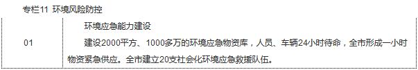 強化環(huán)境應急隊伍建設和物資儲備。探索政府、企業(yè)、社會多元化環(huán)境應急保障力量共建模式,開展環(huán)境應急隊伍標準化、社會化建設。以石化、化工、重金屬、印染、集中式污水處理、危廢處置等行業(yè)為重點,加強企業(yè)和園區(qū)環(huán)境應急物資儲備,構建市級環(huán)境應急物資庫。積極推動環(huán)境應急能力標準化建設。