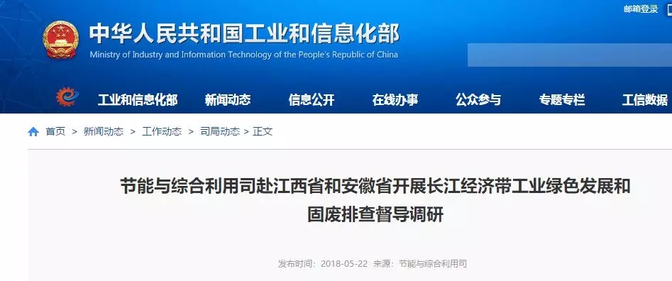 長(zhǎng)江經(jīng)濟(jì)帶工業(yè)綠色發(fā)展和固廢排查督導(dǎo)調(diào)研