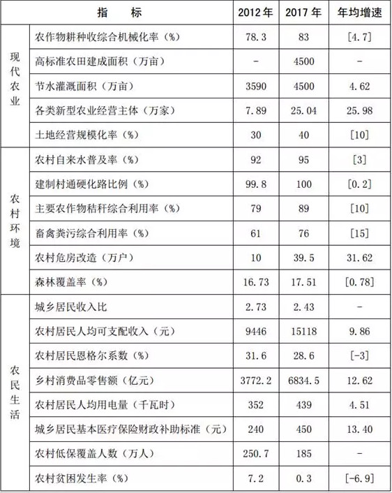 (二)農(nóng)村發(fā)展活力持續(xù)增強(qiáng)。農(nóng)村集體土地承包經(jīng)營權(quán)確權(quán)登記頒證任務(wù)基本完成,全省農(nóng)村土地承包經(jīng)營權(quán)流轉(zhuǎn)面積達(dá)到家庭承包耕地面積的34%,土地經(jīng)營規(guī)?;蔬_(dá)到40%以上。農(nóng)村集體產(chǎn)權(quán)制度改革實(shí)施意見出臺(tái),納入全省經(jīng)濟(jì)社會(huì)發(fā)展綜合考核體系。農(nóng)村“兩權(quán)”抵押貸款試點(diǎn)啟動(dòng),建立農(nóng)村產(chǎn)權(quán)交易中心,形成縣鄉(xiāng)村三級(jí)聯(lián)動(dòng)運(yùn)作模式。穩(wěn)步擴(kuò)大特色農(nóng)產(chǎn)品目標(biāo)價(jià)格保險(xiǎn)試點(diǎn)范圍,農(nóng)產(chǎn)品價(jià)格形成機(jī)制不斷完善。新型農(nóng)業(yè)經(jīng)營主體發(fā)展壯大,全省規(guī)模以上龍頭企業(yè)達(dá)到9600家,農(nóng)民合作社19.2萬家,家庭農(nóng)場(chǎng)5.5萬家,農(nóng)業(yè)社會(huì)化服務(wù)組織超過20萬個(gè)。