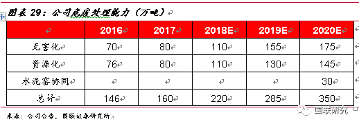 公司始終專注于危險(xiǎn)廢物的無害化處理及資源化利用,憑借自身突出的技術(shù)優(yōu)勢、資深的管理經(jīng)驗(yàn)以及資本優(yōu)勢等,公司在危廢處理行業(yè)持續(xù)鞏固龍頭運(yùn)營商的地位。截至2017年,公司擁有工業(yè)危險(xiǎn)廢物處理資質(zhì)達(dá)160萬噸/年,在行業(yè)內(nèi)遙遙領(lǐng)先。按照公司未來幾年規(guī)劃產(chǎn)能,2020年預(yù)計(jì)公司將擁有350萬噸/年的綜合治理產(chǎn)能,包括水泥窯協(xié)同處置產(chǎn)能,CAGR達(dá)29.81%。對(duì)比我們上文對(duì)公司未來產(chǎn)能空間的測算,假設(shè)市占率2.26%保持不變,公司預(yù)期產(chǎn)能352.8萬噸,所以我們判斷公司規(guī)劃的產(chǎn)能實(shí)現(xiàn)概率很高。