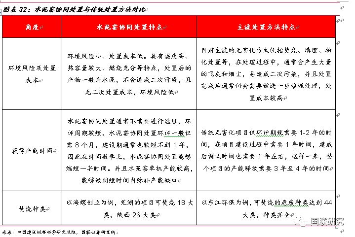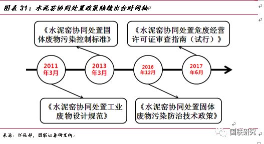 水泥窯協(xié)同處置—危廢無害化處置的有益補(bǔ)充。政策刺激下,水泥窯協(xié)同處置危廢應(yīng)運(yùn)而生。2011年3月,《水泥窯協(xié)同處置工業(yè)廢物設(shè)計(jì)規(guī)范》正式出臺(tái),文件對(duì)工業(yè)廢物處置規(guī)模、技術(shù)等進(jìn)行了詳細(xì)要求,標(biāo)志著對(duì)水泥窯協(xié)同處置政策成熟化的開端。2013年兩高司法提出非法排放、傾倒、處理3噸以上的危廢入刑,從法律層面上對(duì)危廢的排放進(jìn)行了強(qiáng)有力的監(jiān)管,同年3月,《水泥窯協(xié)同處置固體廢物污染控制標(biāo)準(zhǔn)》出臺(tái),規(guī)定了污染排放限值、水泥窯設(shè)施技術(shù)要求以及入窯廢物的特性要求,作為水泥窯協(xié)同處置領(lǐng)域規(guī)范性文件推動(dòng)了行業(yè)的持續(xù)發(fā)展。2016年12月,《水泥窯協(xié)同處置固體廢物污染防治技術(shù)政策》出臺(tái),文中明確了協(xié)同處置固廢應(yīng)利用現(xiàn)有新型干法水泥窯,采用窯磨一體化的運(yùn)行方式進(jìn)行運(yùn)作,政策發(fā)布之后,新建、改建或擴(kuò)建處置危險(xiǎn)廢物的水泥企業(yè),應(yīng)按照要求選擇單線設(shè)計(jì)熟料生產(chǎn)規(guī)模 4000噸/日及以上水泥窯。2017年6月,《水泥窯協(xié)同處置危廢經(jīng)營許可證審查指南(試行)》出臺(tái),對(duì)水泥窯協(xié)同處置危廢的適用范圍、術(shù)語定義、經(jīng)營模式及技術(shù)規(guī)范等方面進(jìn)行了詳細(xì)規(guī)定,并將協(xié)同處置的新型干法水泥窯熟料產(chǎn)能的標(biāo)準(zhǔn)重新進(jìn)行了修訂,由之前4000噸/日調(diào)整下降到2000噸/日,進(jìn)一步擴(kuò)大了產(chǎn)能空間。
