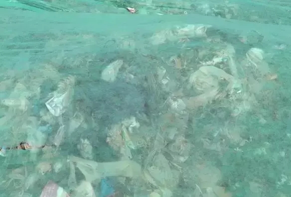 圖5:三善堂臨時垃圾堆場綠化膜下的垃圾清晰可見。