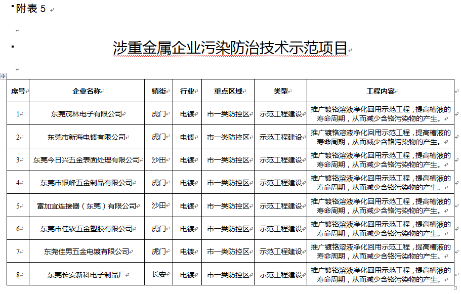 5. 涉重金屬企業(yè)污染防治技術(shù)示范項目