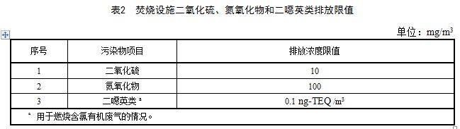 4.2.2廢氣焚燒設(shè)施應(yīng)對(duì)排放煙氣中的二氧化硫、氮氧化物和二噁英類進(jìn)行監(jiān)測(cè),并達(dá)到表2規(guī)定的要求。其他大氣污染物排放還應(yīng)滿足表1的控制要求。