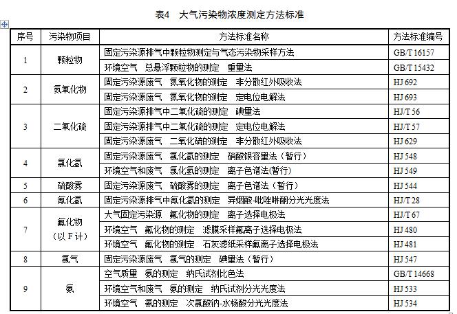 大氣污染物濃度的分析測(cè)定應(yīng)按照表4規(guī)定的方法執(zhí)行。