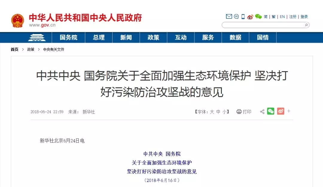 中共中央 國務(wù)院 關(guān)于全面加強(qiáng)生態(tài)環(huán)境保護(hù)堅(jiān)決打好污染防治攻堅(jiān)戰(zhàn)的意見