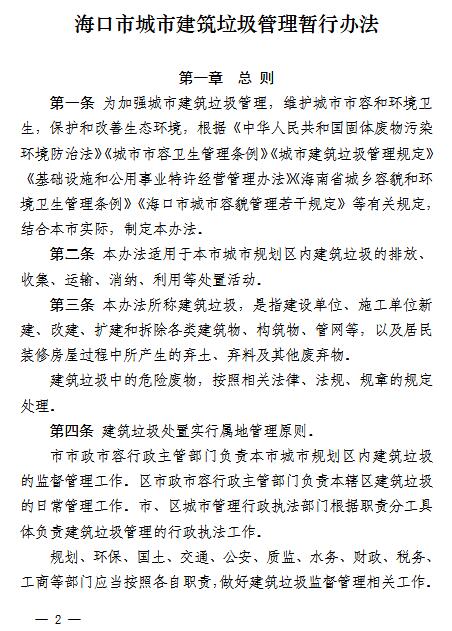 日前海口市人民政府辦公廳印發(fā)《??谑谐鞘?a target="_blank" title="建筑垃圾新聞專題">建筑垃圾管理暫行辦法》(以下簡稱《辦法》),明確要求對建筑垃圾處置實行特許經(jīng)營管理,企業(yè)或個人如果違規(guī)處置將受處罰?!掇k法》從今年9月1日起施行,有效期兩年。