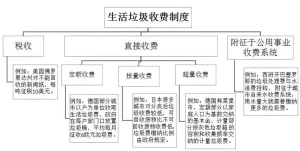 國際上,生活垃圾收費制度主要包括三種類型:稅收方式、直接收費方式和附征于公用事業(yè)收費系統(tǒng)方式。