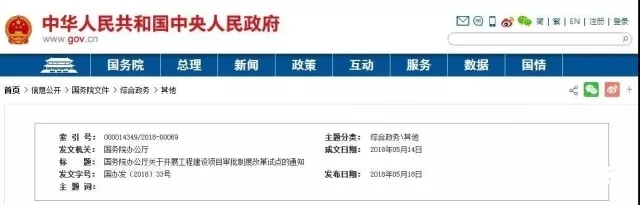 2018年5月18日,國務(wù)院辦公廳發(fā)布《關(guān)于開展工程建設(shè)項(xiàng)目審批制度改革試點(diǎn)的通知》,通知要求地方政府按照黨中央、國務(wù)院關(guān)于深化“放管服”改革和優(yōu)化營商環(huán)境的部署要求,以推進(jìn)政府治理體系和治理能力現(xiàn)代化為目標(biāo),對工程建設(shè)項(xiàng)目審批制度進(jìn)行全流程、全覆蓋改革,努力構(gòu)建科學(xué)、便捷、高效的工程建設(shè)項(xiàng)目審批和管理體系。