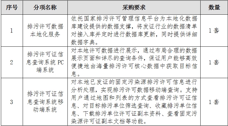 一、采購項目名稱:國家排污許可證系統(tǒng)數(shù)據(jù)本地化服務