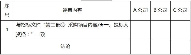 2.投標人分欄中填寫“○”表示該項符合審查要求,“×”表示該項不符合審查要求;