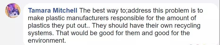 “解決這個(gè)問題最好的方式應(yīng)該是讓那些塑料制造商對他們生產(chǎn)的塑料負(fù)責(zé),他們應(yīng)該有自己的回收系統(tǒng),這對他們自己有利的同時(shí)也有益于我們的環(huán)境?!?/p>