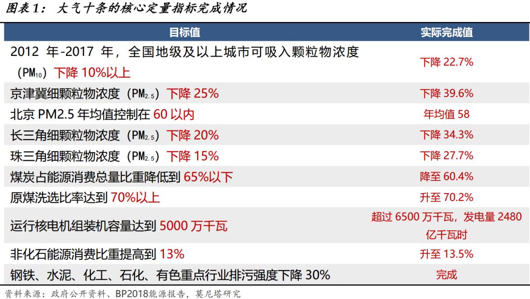 2016年,環(huán)保部(現(xiàn)生態(tài)環(huán)境部)組織了中期評估檢查,督促各地方政府與相關(guān)行業(yè)監(jiān)管機(jī)構(gòu)、企業(yè)的落實(shí)進(jìn)度;到2018年,生態(tài)環(huán)境部通報(bào)了大氣十條的終期考核結(jié)果,宣布合計(jì)45項(xiàng)重點(diǎn)工作任務(wù),全部按期完成。