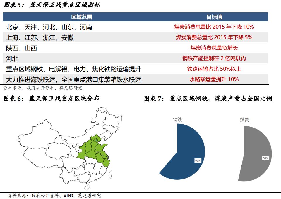 藍(lán)天保衛(wèi)戰(zhàn)三年計(jì)劃特別強(qiáng)調(diào)重點(diǎn)領(lǐng)域的控制,除了一如既然地將鋼鐵、石化、化工、焦化、建材、有色等行業(yè)列為重點(diǎn)關(guān)注行業(yè)以外,還將京津冀、江浙滬皖、陜晉魯?shù)仁∈辛袨橹攸c(diǎn)區(qū)域。