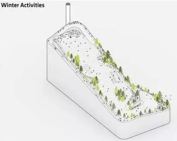 在垃圾焚燒發(fā)電廠的頂部,建造1500米長的綠道、藍道和黑鉆滑雪道供居民娛樂,而這些滑雪道是由回收利用的合成物料構成的。