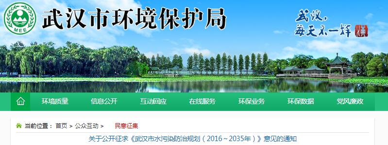 關(guān)于公開(kāi)征求《武漢市水污染防治規(guī)劃(2016~2035年)》意見(jiàn)的通知