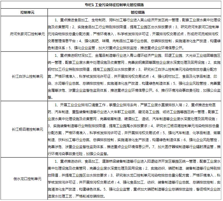 推進(jìn)工業(yè)企業(yè)入園管理。完善工業(yè)集聚區(qū)污水收集處理設(shè)施和在線監(jiān)控設(shè)施。針對(duì)長(zhǎng)江、漢江、府河等重點(diǎn)流域排放廢水的工業(yè)企業(yè),制定并執(zhí)行污染物特別排放限值,出水接入城鎮(zhèn)污水管網(wǎng)的應(yīng)達(dá)到《污水綜合排放標(biāo)準(zhǔn)》一級(jí)B要求,直接排入水環(huán)境的工業(yè)園區(qū)應(yīng)加強(qiáng)中水回用,廢水排放執(zhí)行《城鎮(zhèn)污水處理廠污染物排放標(biāo)準(zhǔn)》表1中一級(jí)A排放標(biāo)準(zhǔn)。
