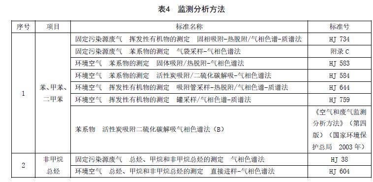 揮發(fā)性有機(jī)物濃度的測(cè)定應(yīng)采用表4所列的方法標(biāo)準(zhǔn)或國家主管部門認(rèn)定的等效方法。