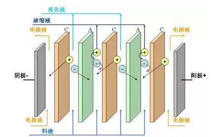電滲析技術(shù)是膜分離技術(shù)的一種,它是在直流電場(chǎng)的作用下,以電位差為推動(dòng)力,利用離子交換膜的選擇透過(guò)性,把電解質(zhì)從溶液中分離出來(lái),從而實(shí)現(xiàn)溶液的淡化、精制或純化目的。