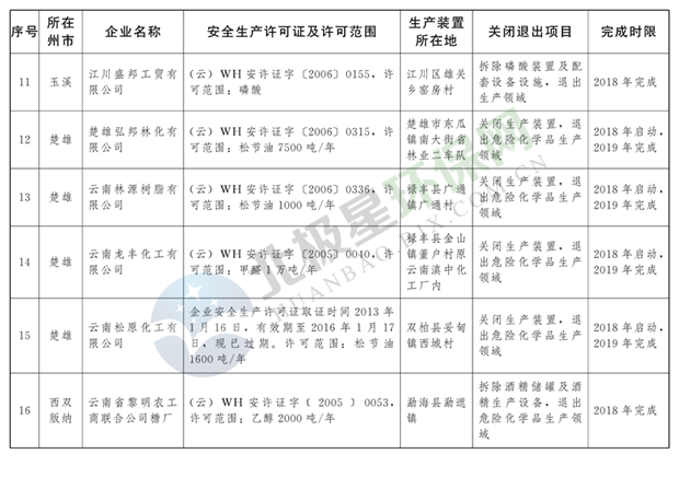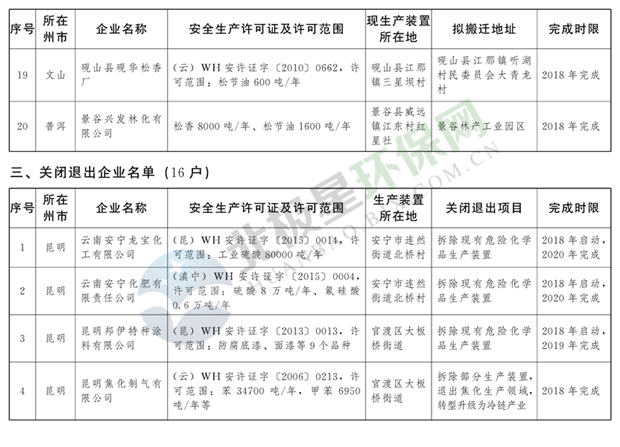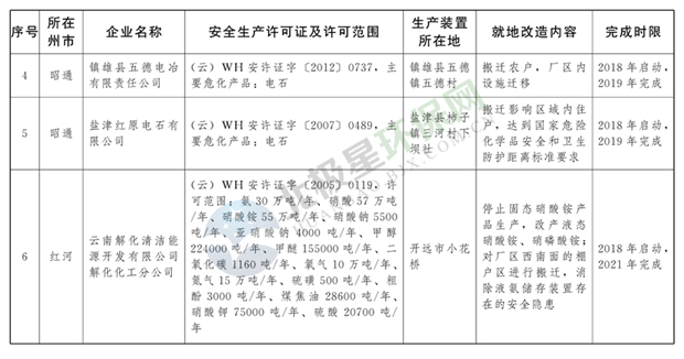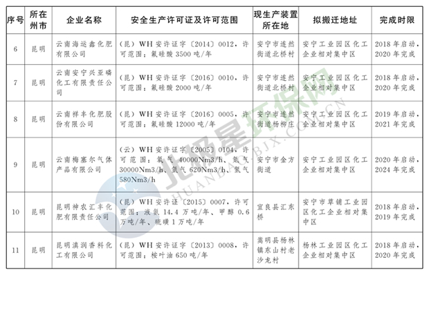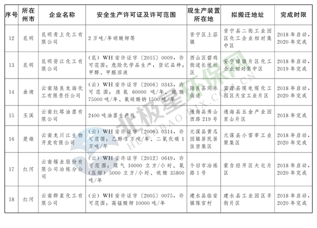日前云南省人民政府發(fā)布了《云南省城鎮(zhèn)人口密集區(qū)危險(xiǎn)化學(xué)品生產(chǎn)企業(yè)搬遷改造名單》,其中就地改造企業(yè)6戶(hù),搬遷入園企業(yè)20戶(hù),關(guān)閉退出企業(yè)16戶(hù),具體名單見(jiàn)正文: