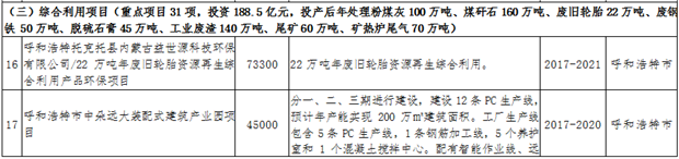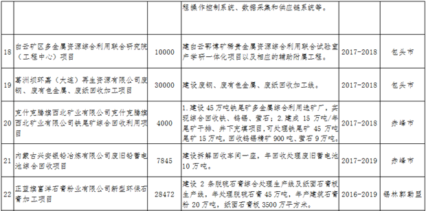 資源綜合利用。積極爭取國家在內(nèi)蒙古布局高鋁粉煤灰提取氧化鋁項(xiàng)目,擴(kuò)大產(chǎn)業(yè)化規(guī)模,降低氧化鋁進(jìn)口比例。利用粉煤灰、煤矸石、礦渣生產(chǎn)水泥、新型墻材、土壤改良劑、復(fù)合肥等,到2020年,煤矸石、粉煤灰等大宗工業(yè)固廢綜合利用率達(dá)到45%。推進(jìn)工業(yè)園區(qū)高濃度難降解工業(yè)廢水、重金屬廢水、城鎮(zhèn)污水綜合利用。支持包頭建設(shè)國家“城市礦產(chǎn)”示范基地,發(fā)展報(bào)廢汽車、廢舊電子電器等資源再利用產(chǎn)業(yè)。