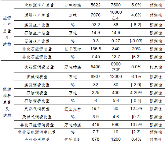 能源結(jié)構(gòu)進一步優(yōu)化。非化石能源消費總量占一次能源消費比重達到10%左右、電量占全社會用電量的比重提高到20%,煤炭消費比重降低到80%左右,天然氣(含煤層氣)消費比重提高到4.6%。