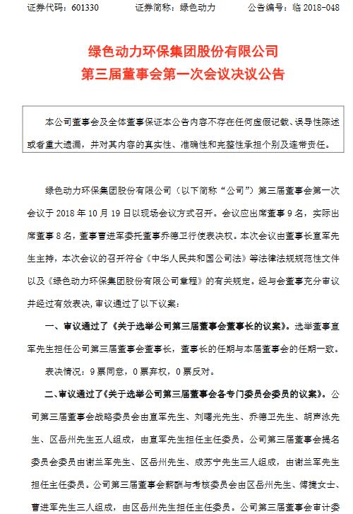 原標題:綠色動力環(huán)保(01330)選舉直軍擔任公司董事長