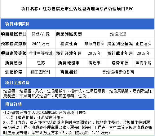 中項網(wǎng)獨家授權(quán)北極星固廢網(wǎng)發(fā)布最新垃圾處理項目(2018年10月22日更新),其中包括垃圾中轉(zhuǎn)站建設(shè)項目、垃圾發(fā)電廠配套填埋場項目、生活垃圾綜合處理項目等。具體內(nèi)容如下: