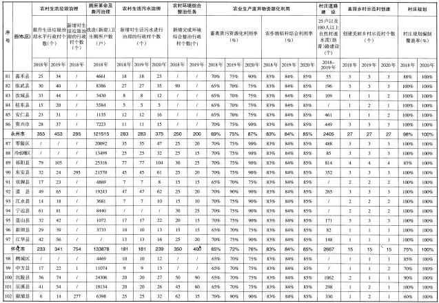 (一)深入推進(jìn)農(nóng)村生活垃圾治理。實(shí)施“農(nóng)村生活垃圾治理工程”,加快農(nóng)村垃圾五年專項(xiàng)治理,統(tǒng)籌考慮生活垃圾和農(nóng)業(yè)生產(chǎn)廢棄物利用、處理,建立符合農(nóng)村實(shí)際的農(nóng)村生活垃圾收運(yùn)處置體系,建立穩(wěn)定高效的運(yùn)行維護(hù)管理機(jī)制。推廣適合農(nóng)村特點(diǎn)的垃圾就地分類和資源化利用方式,不斷提升農(nóng)村垃圾治理水平。對較大規(guī)模的非正規(guī)垃圾堆放點(diǎn)和河道水面漂浮垃圾進(jìn)行清理整治,清理河湖沿岸垃圾,重點(diǎn)整治“垃圾山”、“垃圾島”、“垃圾圍村”、“垃圾圍壩”、工業(yè)污染“上山下鄉(xiāng)”。加強(qiáng)生活垃圾處理技術(shù)研究和設(shè)施研發(fā),鼓勵和支持秸稈、畜禽糞便等農(nóng)業(yè)廢棄物資源綜合利用。2018年,新增對垃圾進(jìn)行處理的行政村2400個(gè)左右,全省對垃圾進(jìn)行處理的行政村比例基本達(dá)到90%,每個(gè)市州選擇1個(gè)縣市區(qū)開展農(nóng)村生活垃圾就地分類和資源化利用的試點(diǎn)。2019年,基本達(dá)到國家農(nóng)村生活垃圾治理驗(yàn)收標(biāo)準(zhǔn),達(dá)到“五有”標(biāo)準(zhǔn)。2020年,全面完成農(nóng)村生活垃圾治理任務(wù)。
