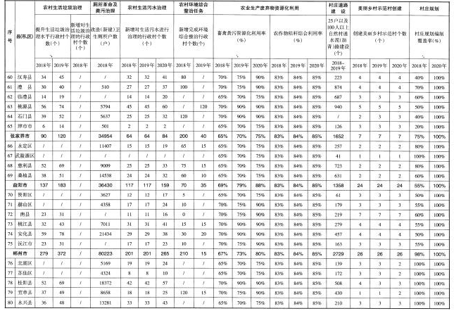 中心城市城區(qū)和長株潭經(jīng)濟(jì)強(qiáng)縣市區(qū)農(nóng)村人居環(huán)境質(zhì)量全面提升,所有村莊生活垃圾得到有效治理,垃圾分類減量和資源化利用全覆蓋,村莊日常保潔機(jī)制全面建立,農(nóng)戶衛(wèi)生廁所普及率達(dá)到100%,廁所糞污基本得到處理或資源化利用,村內(nèi)主要道路全部硬化,人居環(huán)境管護(hù)長效機(jī)制全面建立。