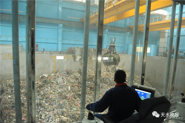 在位于社棠工業(yè)園區(qū)南區(qū)的中節(jié)能(天水)環(huán)保能源有限公司里記者看到,從兩區(qū)五縣源源不斷通過環(huán)衛(wèi)垃圾車?yán)\(yùn)來的生活垃圾被倒進(jìn)偌大的垃圾倉(cāng)后,經(jīng)過初步處理后再投進(jìn)燃燒爐焚燒發(fā)電,焚燒后產(chǎn)生的廢渣通過自動(dòng)生產(chǎn)線打包后運(yùn)往另外一個(gè)廠家生產(chǎn)輕型環(huán)保磚。