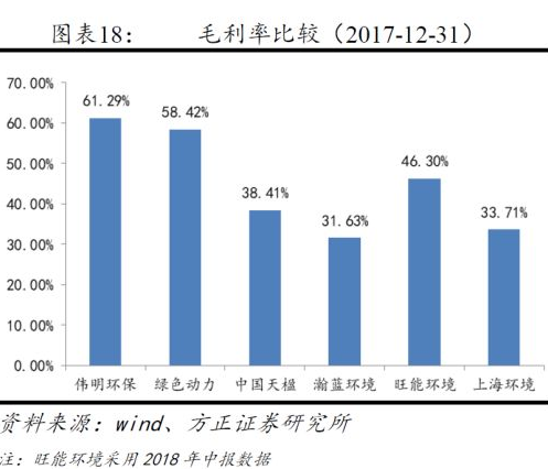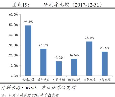 凈利率方面,2017年垃圾焚燒發(fā)電行業(yè)整體凈利率19.26%,高于其他細分行業(yè)。
