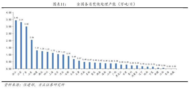 從垃圾焚燒產(chǎn)能角度看,浙江、江蘇、廣東三省垃圾焚燒產(chǎn)能超過3萬噸/日,甘肅、貴州、內(nèi)蒙古、遼寧、陜西、寧夏、新疆、江西8省垃圾焚燒產(chǎn)能不足3000噸/日,而青海和西藏更是尚無垃圾焚燒項目。