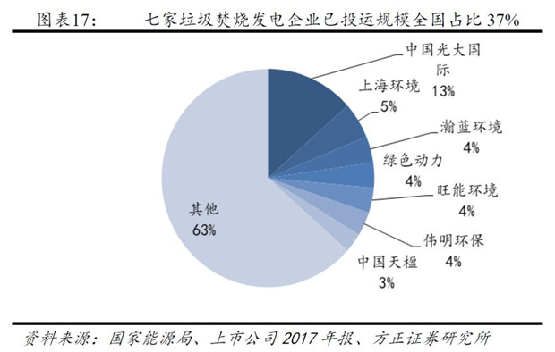 從上市公司已投運的垃圾焚燒發(fā)電項目來看,截止2017年底,七家垃圾焚燒發(fā)電企業(yè)已投運規(guī)模合計10.62萬噸/日,占全國已投運項目的37%。