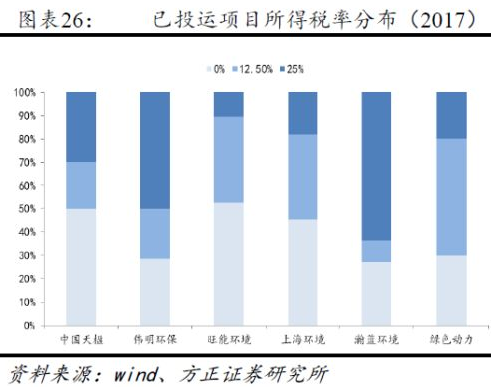 根據(jù)財政部、國家稅務(wù)總局、國家發(fā)改委研究制定并實施的《環(huán)境保護節(jié)能節(jié)水項目企業(yè)所得稅優(yōu)惠目錄(試行)》之規(guī)定,垃圾焚燒發(fā)電項目的經(jīng)營主體,自項目取得第一筆生產(chǎn)經(jīng)營收入所屬納稅年度起,第一年至第三年免征企業(yè)所得稅,第四年至第六年減半征收企業(yè)所得稅。同時,部分設(shè)備子公司通過申請《高新技術(shù)企業(yè)證書》,可享受15%的優(yōu)惠稅率。
