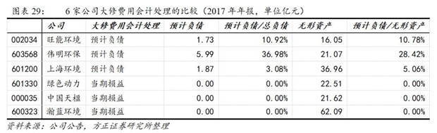 上海環(huán)境預(yù)計負債確認比例較少,是由于公司對大修費用的計提按照2-3年周期進行計提;而偉明環(huán)保和旺能環(huán)境是對項目全生命周期的大修費用計提,初始金額較大。